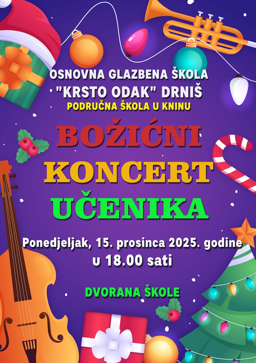 NAJAVA: Božićni koncert učenika u Osnovnoj glazbenoj školi "Krsto Odak" - Područna škola Knin 10 Prosinac 2025 | Najave