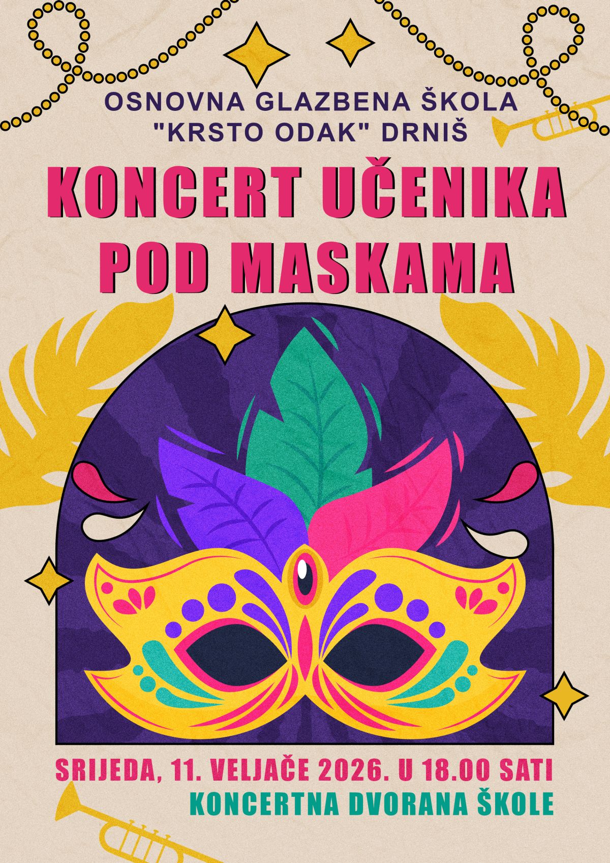 NAJAVA: Koncert učenika pod maskama u Osnovnoj glazbenoj školi "Krsto Odak" u Drnišu 05 Veljača 2026 | Najave