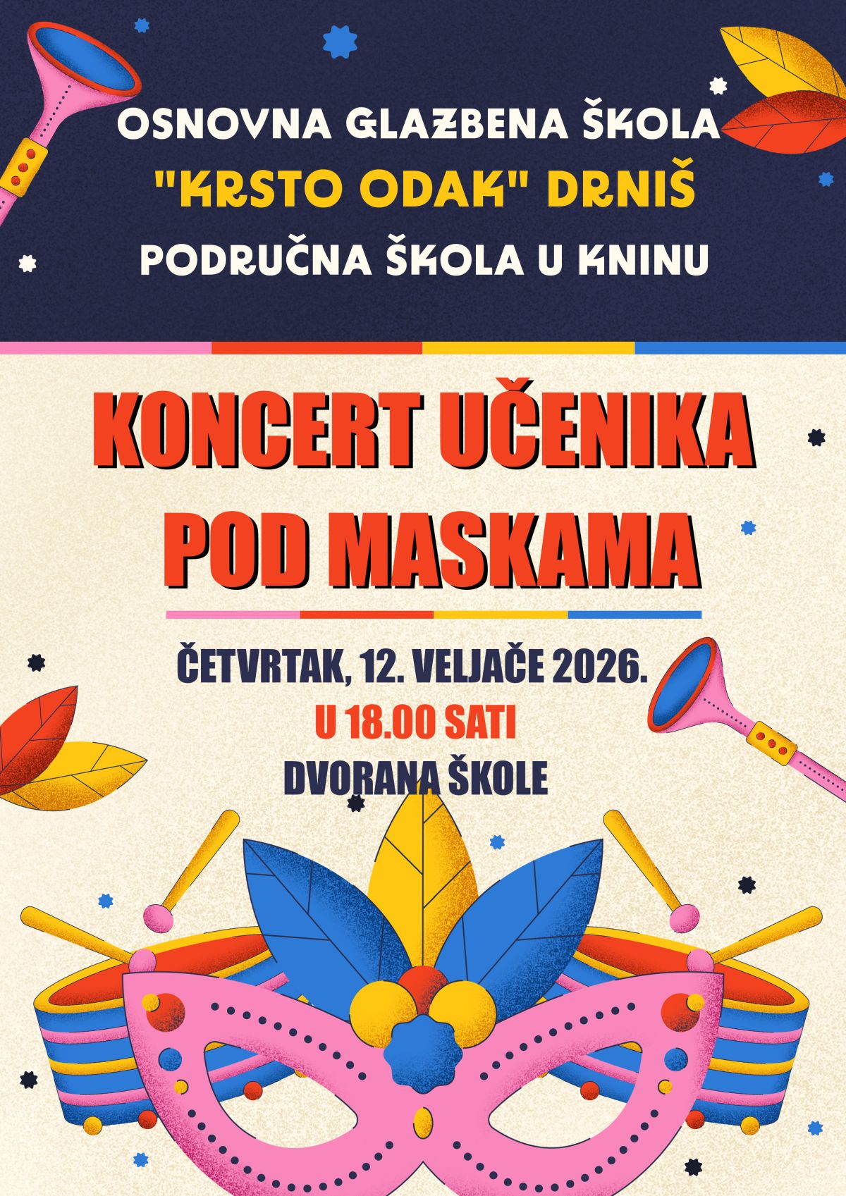 NAJAVA: Koncert učenika pod maskama u Osnovnoj glazbenoj školi "Krsto Odak" - Područna škola Knin 05 Veljača 2026 | Najave