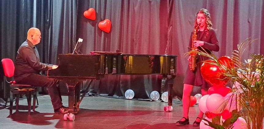 Učenica Zrinka Rita Abramac (saksofon) nastupila je u petak, 13. veljače 2026. godine uz klavirsku pratnju profesora Attile Mesarića na svečanom koncertu povodom Dana Osnovne glazbene škole "Lovro pl. Matačić" Omiš.