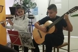 Učenici škole: Sara Čulina (flauta), Ana-Marija Vrbatović (flauta), Marija Copić (klarinet), Petra Mihaljević (klarinet) i Roko Šuljak (gitara) nastupili su danas u prigodnom programu povodom obilježavanja Dana Doma za starije osobe u Oklaju.