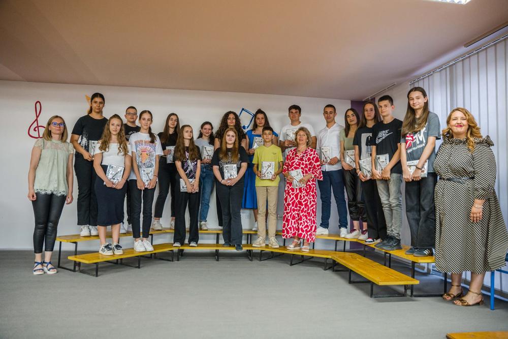 Na kraju koncerta razrednica šestog razreda, profesorica Katica Brakus, uručila je učenicima završnog razreda prigodne poklone.