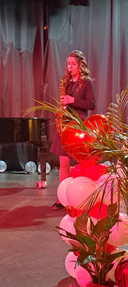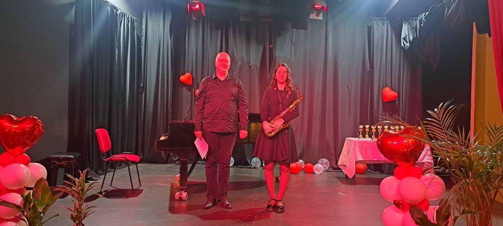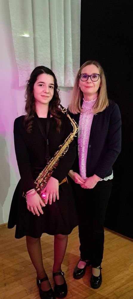 Učenica Zrinka Rita Abramac (saksofon) nastupila je u petak, 13. veljače 2026. godine uz klavirsku pratnju profesora Attile Mesarića na svečanom koncertu povodom Dana Osnovne glazbene škole "Lovro pl. Matačić" Omiš.